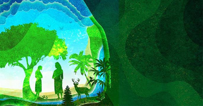 Adam y Java son colocados en el Jardín del Edén y se les ordena no comer del « Árbol del Conocimiento del Bien y del Mal ». La serpiente persuade a Java a violar la orden, y ella comparte el fruto prohibido con su esposo. Debido a su pecado , se decreta que el hombre experimentará la muerte , regresando a la tierra de la que fue formado, y que toda ganancia vendrá solo a través de la lucha y las dificultades. El hombre es desterrado del Jardín .