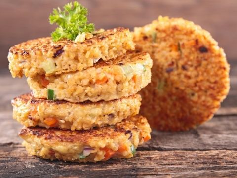 Mientras tanto, poner en un bowl la harina, en otro los huevos y en un tercer bowl el pan rallado con el orégano y sal de ajo. Rebozar cada berenjena primero por harina, luego por los huevos y por último el pan rallado. Calentar el aceite y freír las berenjenas.