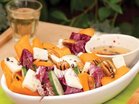 Ensalada de pepino, radicchio y melón Ingredientes 1 melón 1 pepino 1 radicchio 20 g de nueces pecán 150 g de queso de cabra semiduro/o... Continue reading