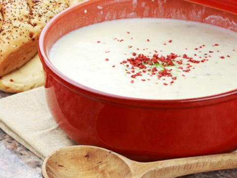 Transfiera cuidadosamente la sopa a una licuadora o procesador de alimentos y mezcle hasta que esté suave, aproximadamente 5 minutos. Sazonar con sal y agregar crema de leche. Pulso un par de veces para combinar y servir inmediatamente o devolver a la olla y calentar a fuego lento hasta que esté listo para servir.