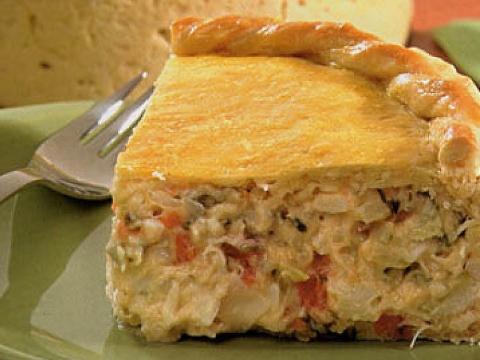Se debe rellenar un molde forrado con la masa de tarta y arriba colocarle los palmitos por mitades dándole una buena decoración, y espolvorear con el queso rallado.